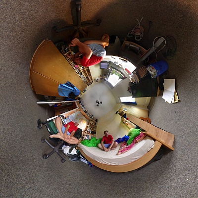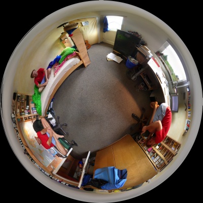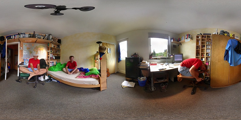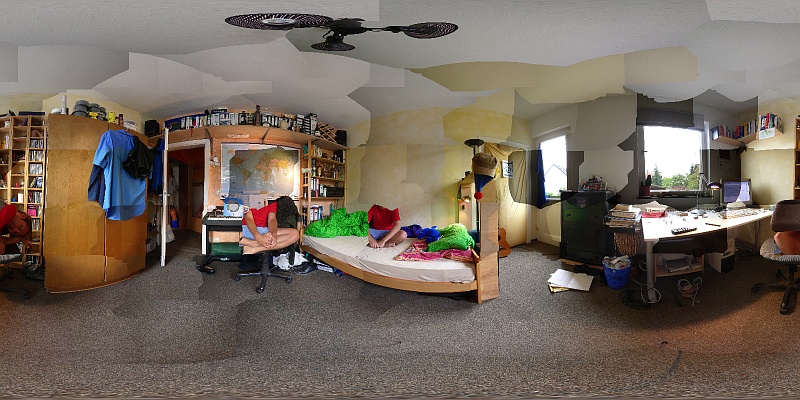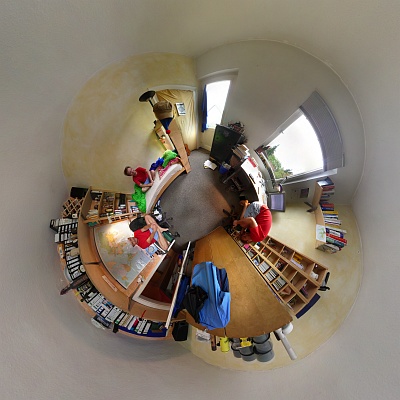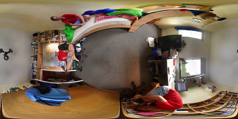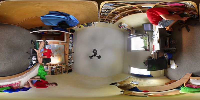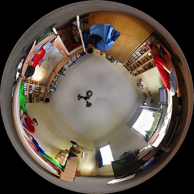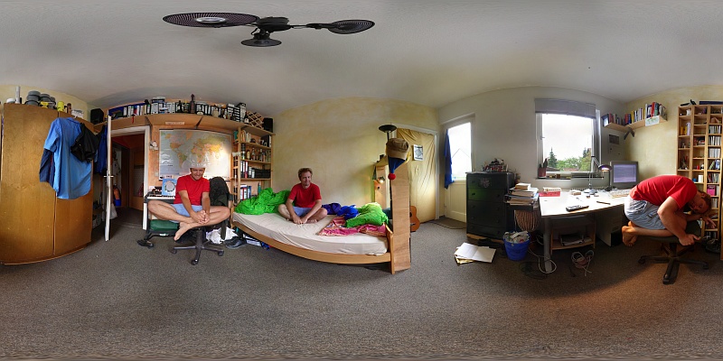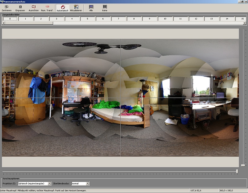 Man kann an der obigen Anordnung übrigens erkennen, dass die Bilder ungleichmäßig über die Vollsphäre verteilt sind. Das liegt zum Einen an einer fehlenden Einrastvorrichtung am Stativ (für reproduzierbare Blickrichtungen) und zum Anderen ist es aber auch Absicht gewesen: